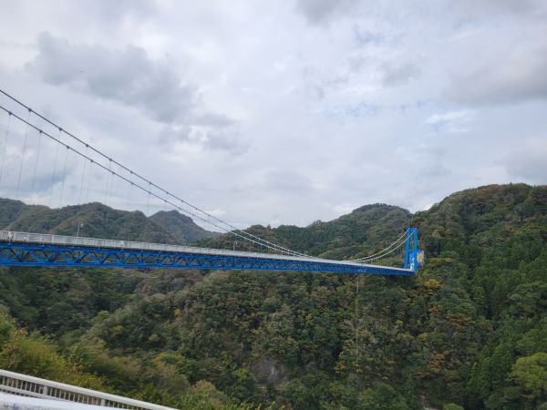 全長375メートルある竜神大吊橋では、橋上から竜神ダムや竜神湖を一望、