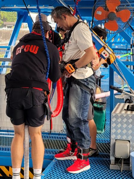 天候はあいにくの雨となりましたが、バンジージャンプは予定通り決行。